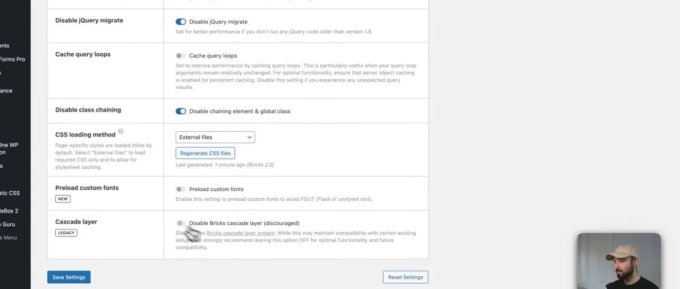 • Bricks packt seine Standard-CSS in einen eigenen Layer (z. B. „bricks“).